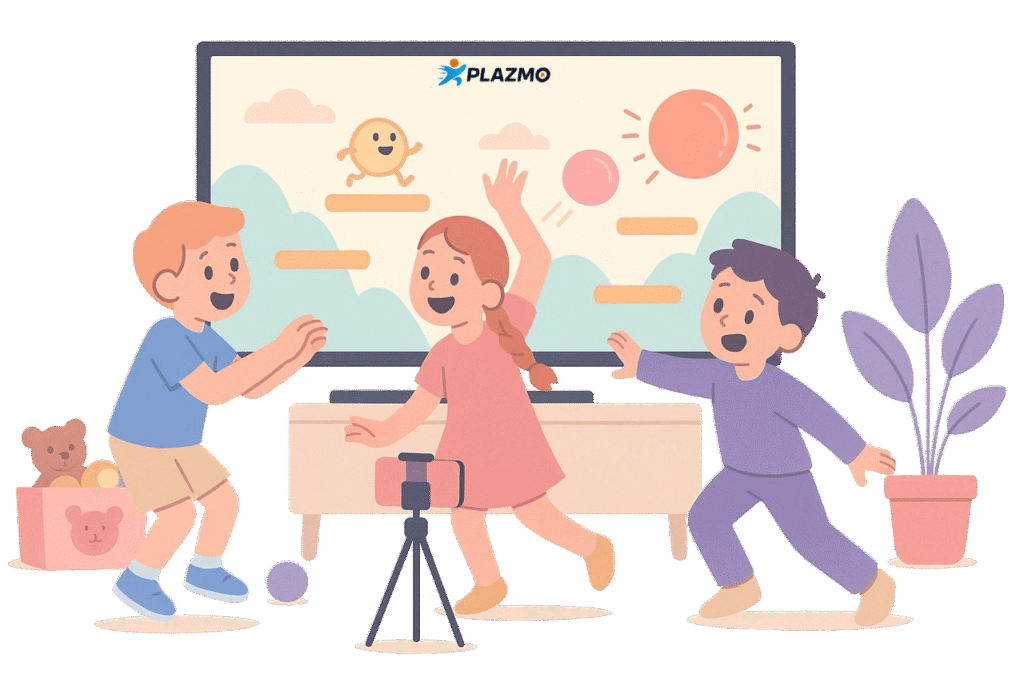 Plazmo is a motion‑controlled gaming system that turns kids’ body movements into the controller. No bulky console — just your smartphone and a TV. Our mission is simple: make screen time healthy, active, and fun.